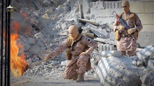 It's not the first time the terror group has presented a uniformed look in a propaganda video. In February, IS militants wore matching digital desert camouflage uniforms similar to the pattern licensed to the U.S. Marine Corps called MARPAT, or "Marine Pattern."